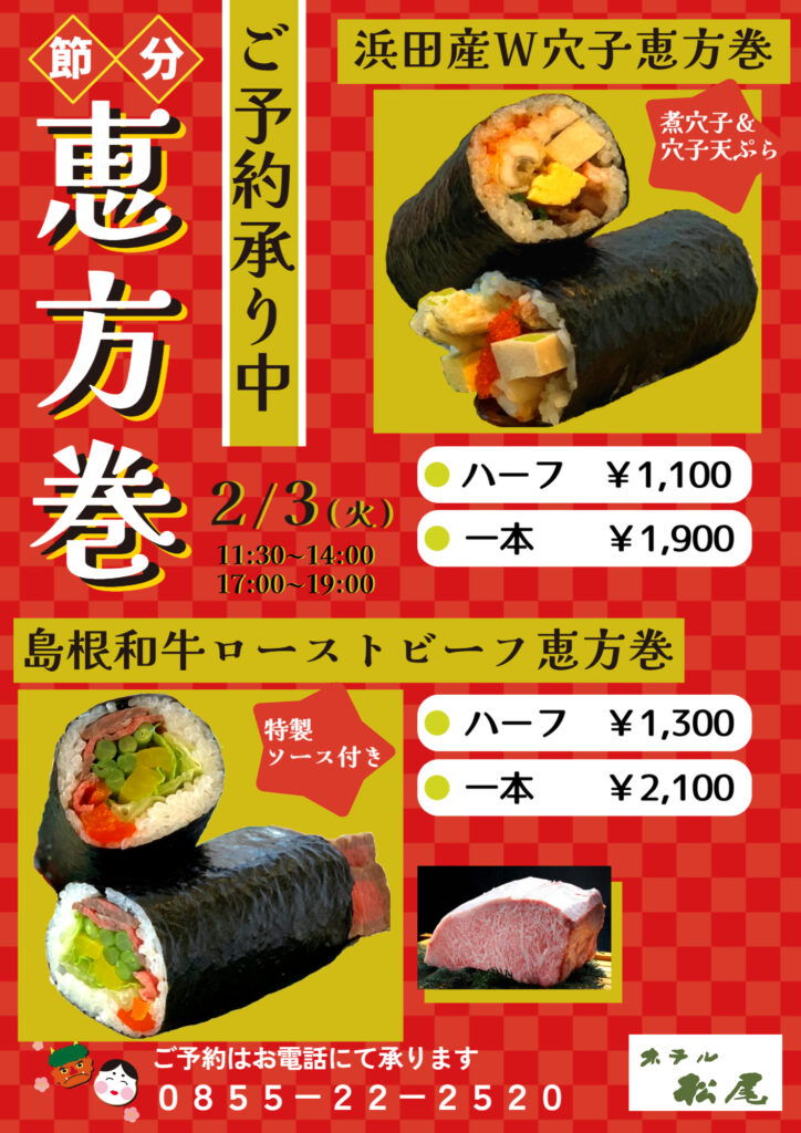 2月3日(火)はテイクアウト恵方巻を販売いたします!