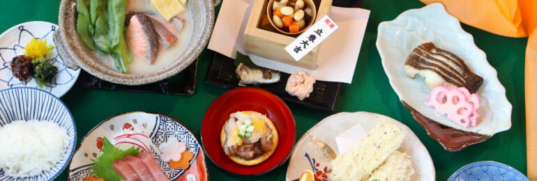月替りの御献立 心地の良い秋の空気に包まれて、どこかに出かけたくなる季節になりましたね。 旧暦10月、島根県は八百万の神々が出雲大社に集まる神在月です。島根は東西に広いですが、ぜひ浜田にも足をお運びくださいませ。 【神在月御献立】一、八寸 柿なますと神在月の二種一、造里 …