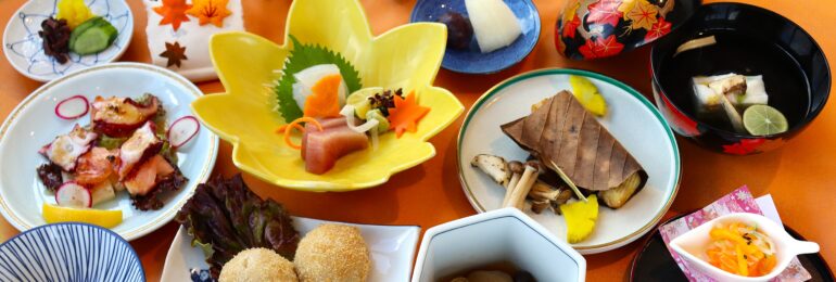 月替りの御献立 心地の良い秋の空気に包まれて、どこかに出かけたくなる季節になりましたね。 旧暦10月、島根県は八百万の神々が出雲大社に集まる神在月です。島根は東西に広いですが、ぜひ浜田にも足をお運びくださいませ。 【神在月御献立】一、八寸 柿なますと神在月の二種一、造里 …